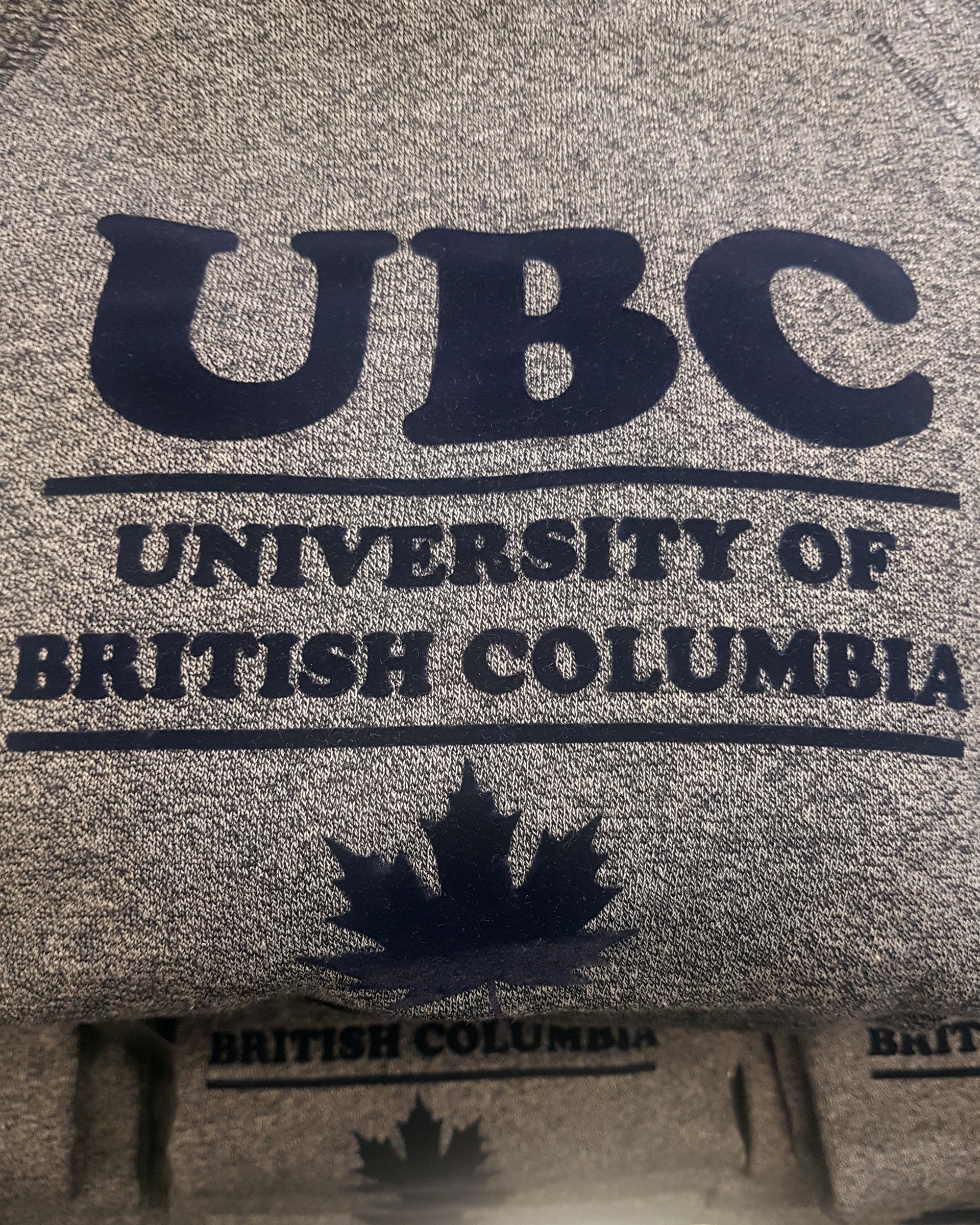 A few assorted designs completed for Varsity Apparel, on display at the UBC Bookstore. Felt imprints and screen print.